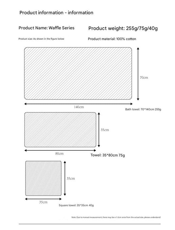 - 1 x Washcloth/Square Towel: 35cm x 35cm (Approx. 40g)